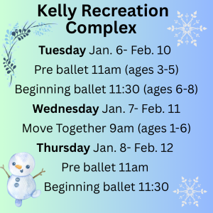 Gaby has 6 new classes starting Jan 6th through February 12, these are weekly classes. Please email for more information at meeshinmotion@gmail.com or call Kelly Recreational Complex at 863.834.3284.